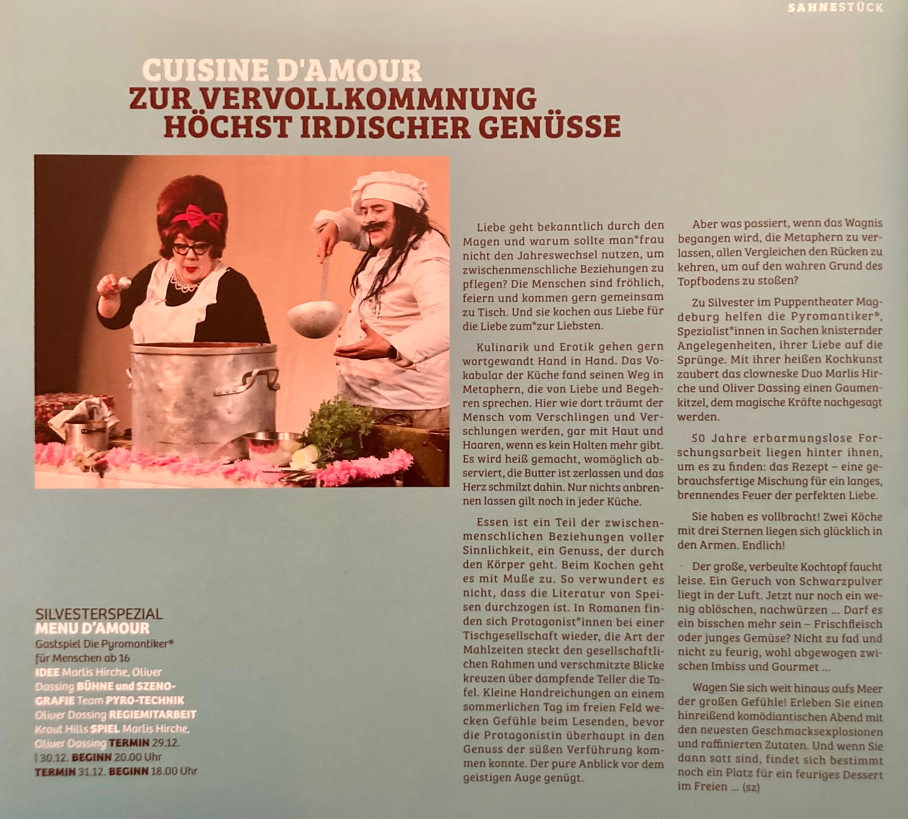 „ … das glitzernde Feuerwerksfinale der Pyromantiker aus Berlin, das dem Theaterrezept die Sahnekirsche aufsetzt ...“ Julia Weigl, Wochenblatt Landshut, 18. Oktober 2017