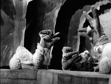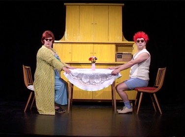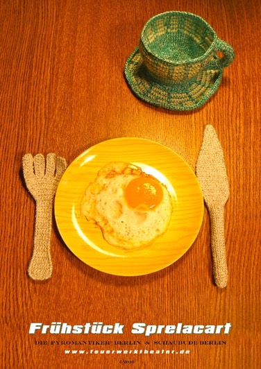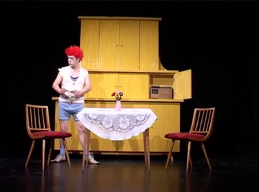 In the idyll of a breakfast world in the kitchen furniture develops a wild game between man and woman, between a cock and hens. "Breakfast knitted" lights up an absurd world of wool and crochet - staged as a comic gestures from the 60 - funny and hilarious .